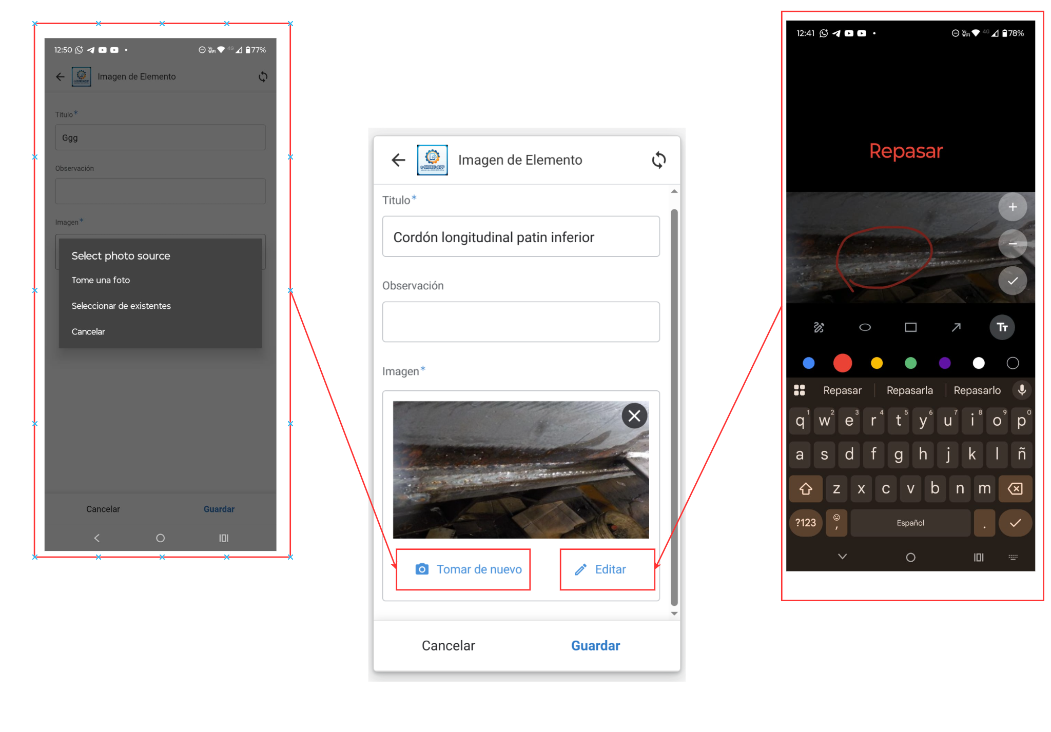 Fig 23 Vista de imagen de elemento inspeccionado, en modo edición en e-NDICC-APP