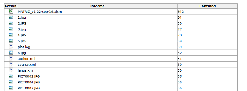 Esta opción es posible gracias a la manipulación de datos en la base de datos. De los archivos registrados, el sistema cuenta cuantas veces se repite un nombre de archivo sin importar su carpeta y si su cantidad se repite, se muestra en esta tabla.
