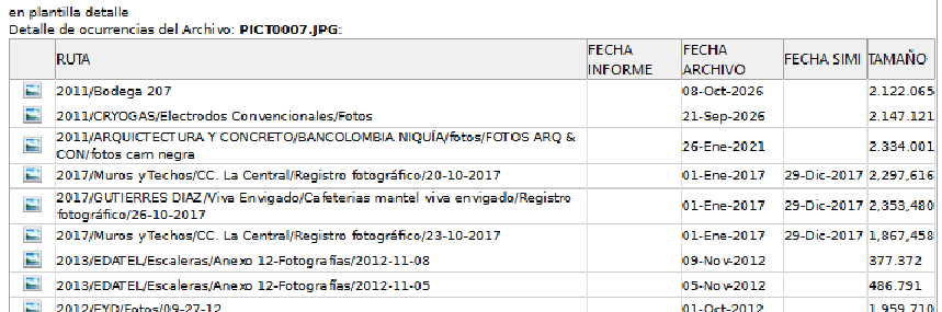 Por ejemplo el archivo "PICT0007" que se muestra en la figura anterior y que se repite 56 veces, se verá así en el detalle.