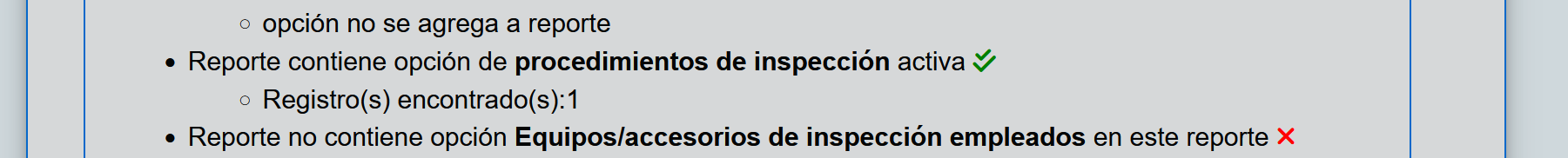 Fig. 17 Detalle de resultados de procedimientos de inspección en reporte tipo Formulario