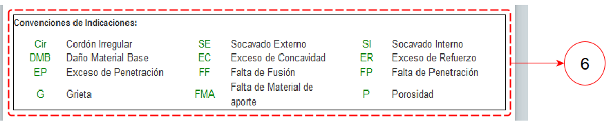 Fig 822 Detalle de Convenciones de Indicaciones de un reporte Express, para un tipo de Reporte Inspección Visual.