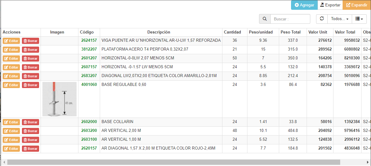 Fig 688 Extracto de Pantalla, listado de productos a alquilar mostrando detalles de una orden de Salida.