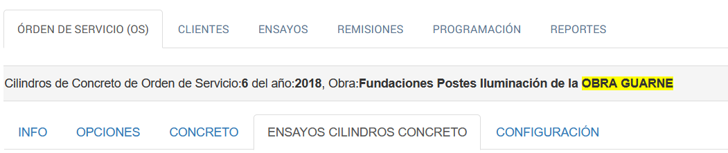 Portada / Ensayos Cilindros Concreto/ Pestaña Detalle de OBRAS