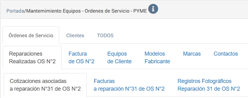 Fig 619 Pestañas de Tercer nivel, relacionadas con la Documentación Anexa asociada a una Reparación de un equipo Seleccionado.