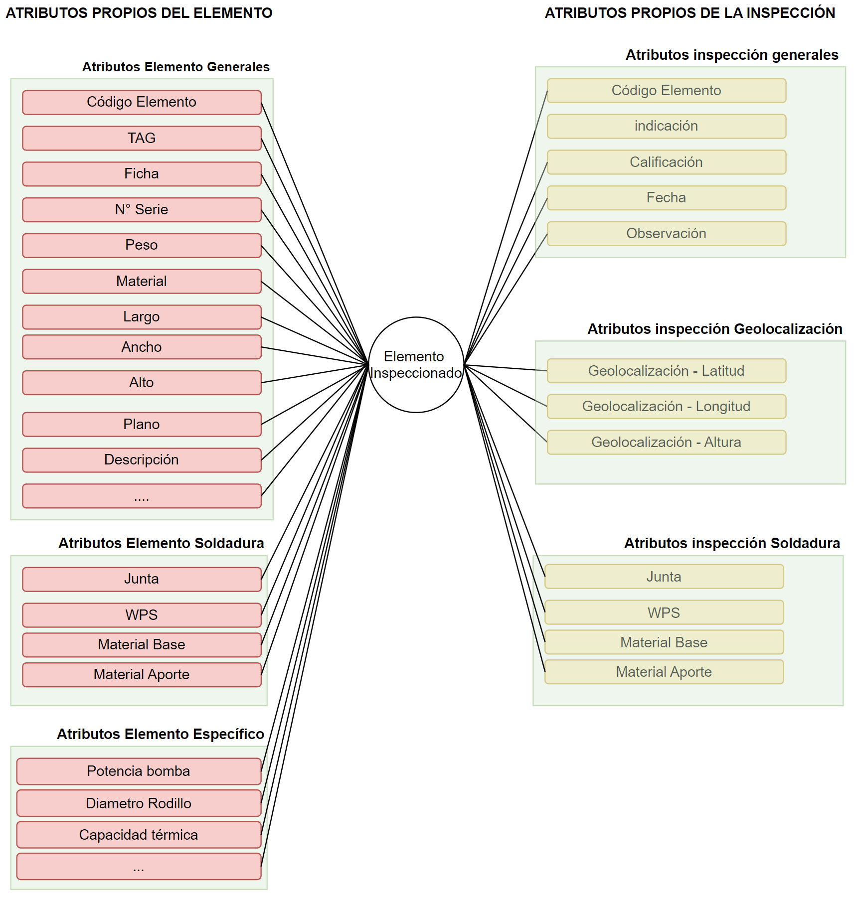 Fig 1022 Conjunto de Atributos de un elemento (incompleto), intrínsecos del Elemento y de la inspección