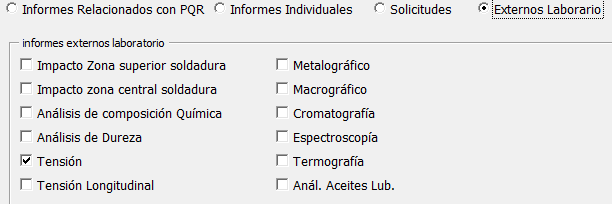 Fig 917 Selección informe Tensión de la opción "Externo laboratorio"