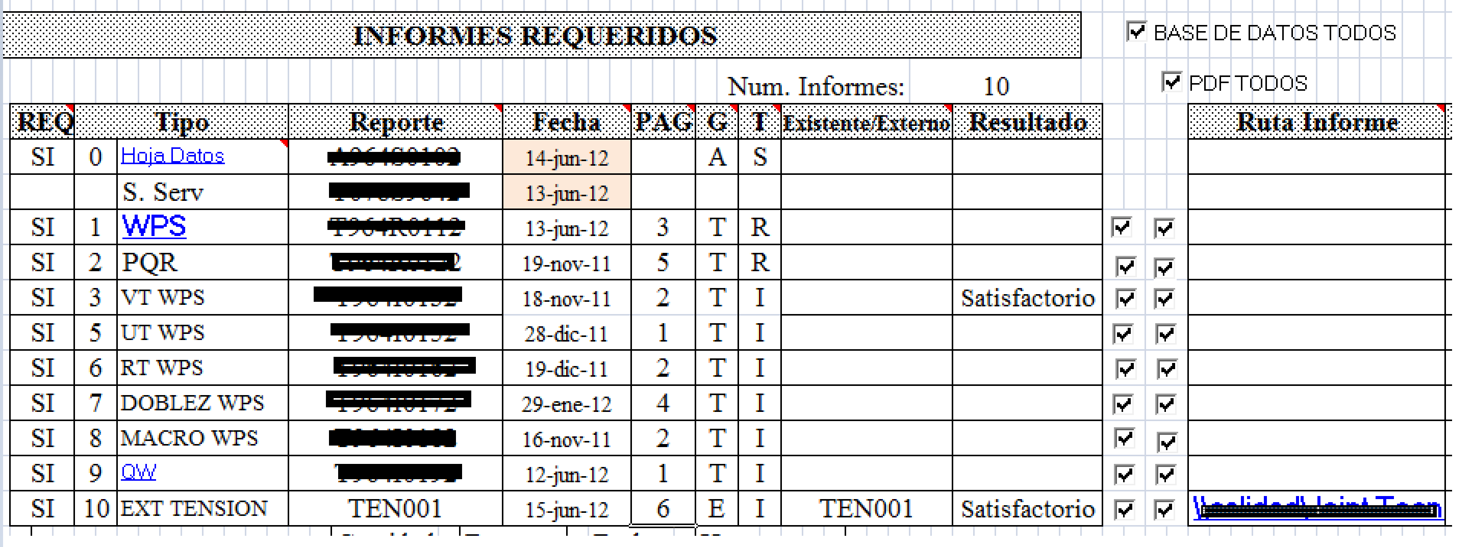 Por ejemplo si se quiere realizar un PQR y hay ensayo de tensión externos que avalan que avalan los resultados se debe realizar lo siguiente. Este informe externo corresponde a un ensayo de tracción, cuyo nombre es “TEN 001”