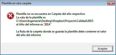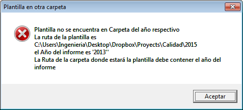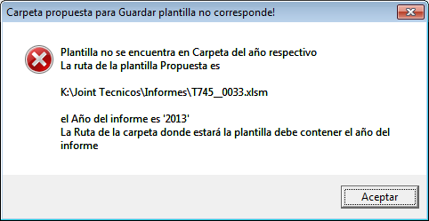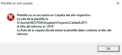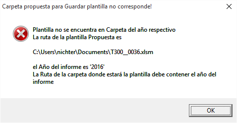 Este error se produce porque la plantilla esta físicamente en una carpeta que no contiene en ella el año del informe.