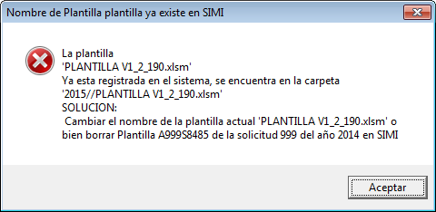 Error 1000: Nombre de Plantilla ya existe en e-NDICC