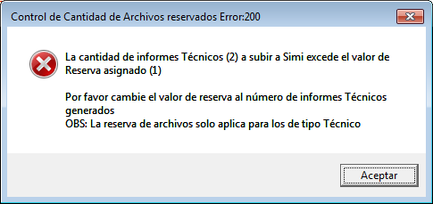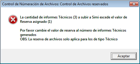 En caso de que la cantidad de informes a realizar sea mayor que la reserva aparecerá una ventana, tal como se muestra en la siguiente imagen