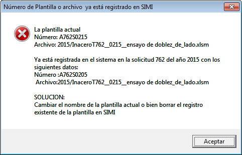 Este error se produce generalmente al registrar por segunda vez una plantilla ya sea con otro secuencial o que el mismo nombre de archivo esté en otra ubicación.