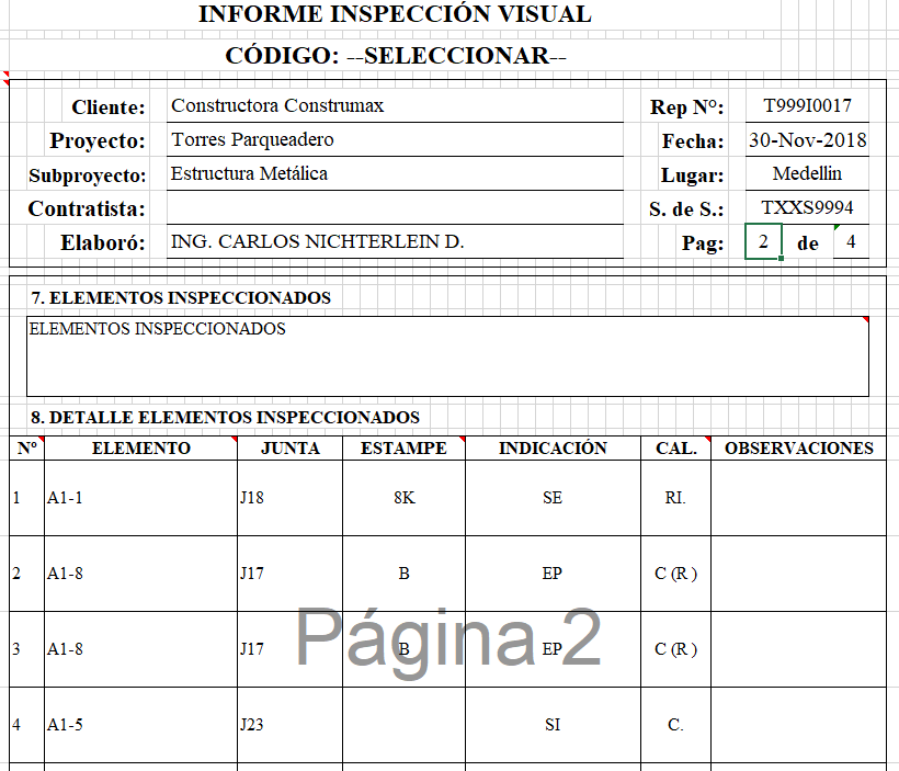- PDF Se genera el reporte en formato PDF directamente para poder entregar al cliente. Esto permitiría por ejemplo que clientes puedan descargar directamente sus reportes, Este reporte puede incluir firmas del responsable que elaboró el documento o timbres de la empresa
