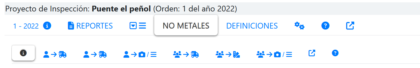 Al seleccionar la PESTAÑA Metales, se mostrará una segundo nivel de PESTAÑAS que muestra la opciones que tiene esta familia de inspecciones, tal como se muestra en la siguiente imagen