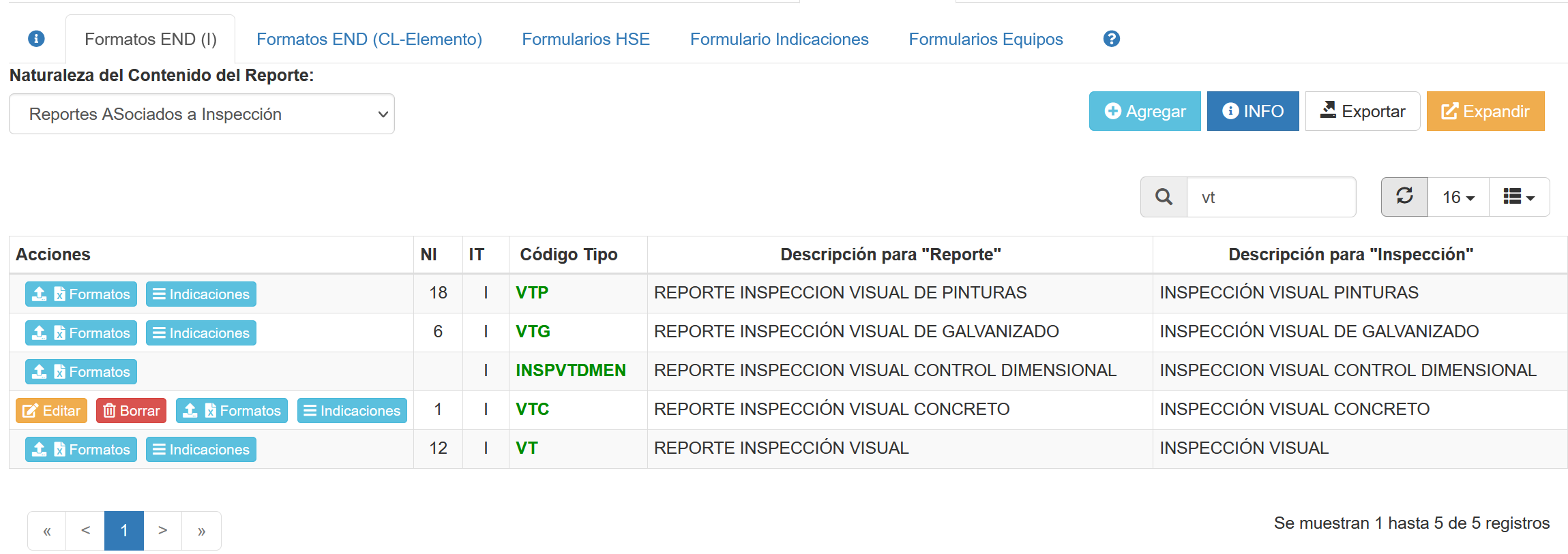 Fig 937 Listado de Reportes END del Tipo Inspección (I).