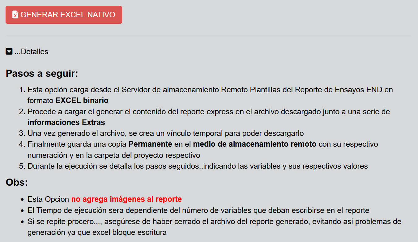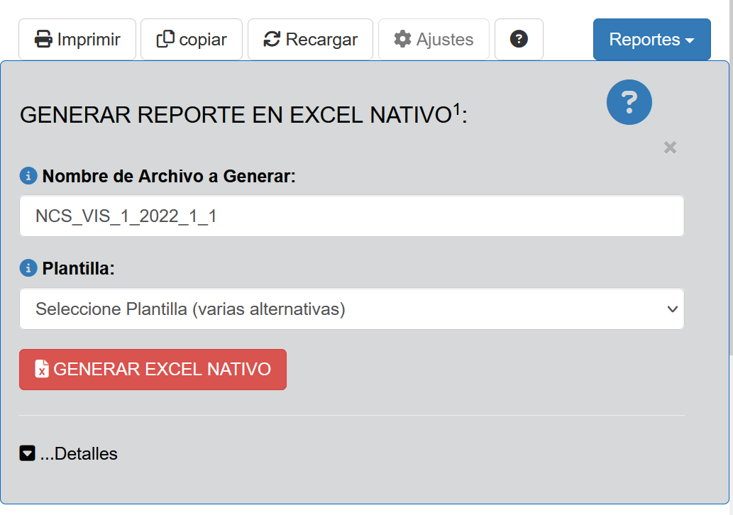 Fig 853 Ventana detalle para la generación de Reporte EXCEL en formato Nativo.