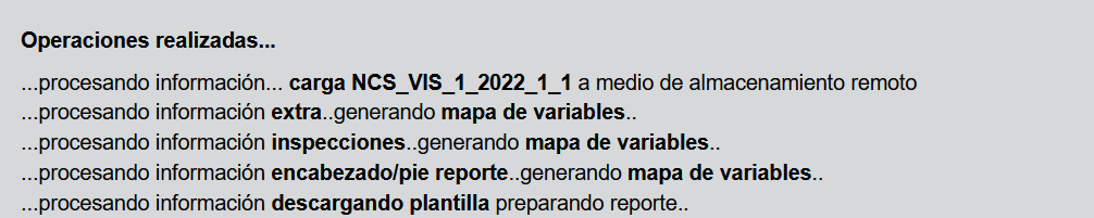 Esta opción corresponde a la última etapa e involucra aspectos asociados a la generación de un reporte con un formato conocido por el usuario con base a la información adquirida durante las inspecciones y una información adicional. Mayor información, ver Etapas de un Reporte