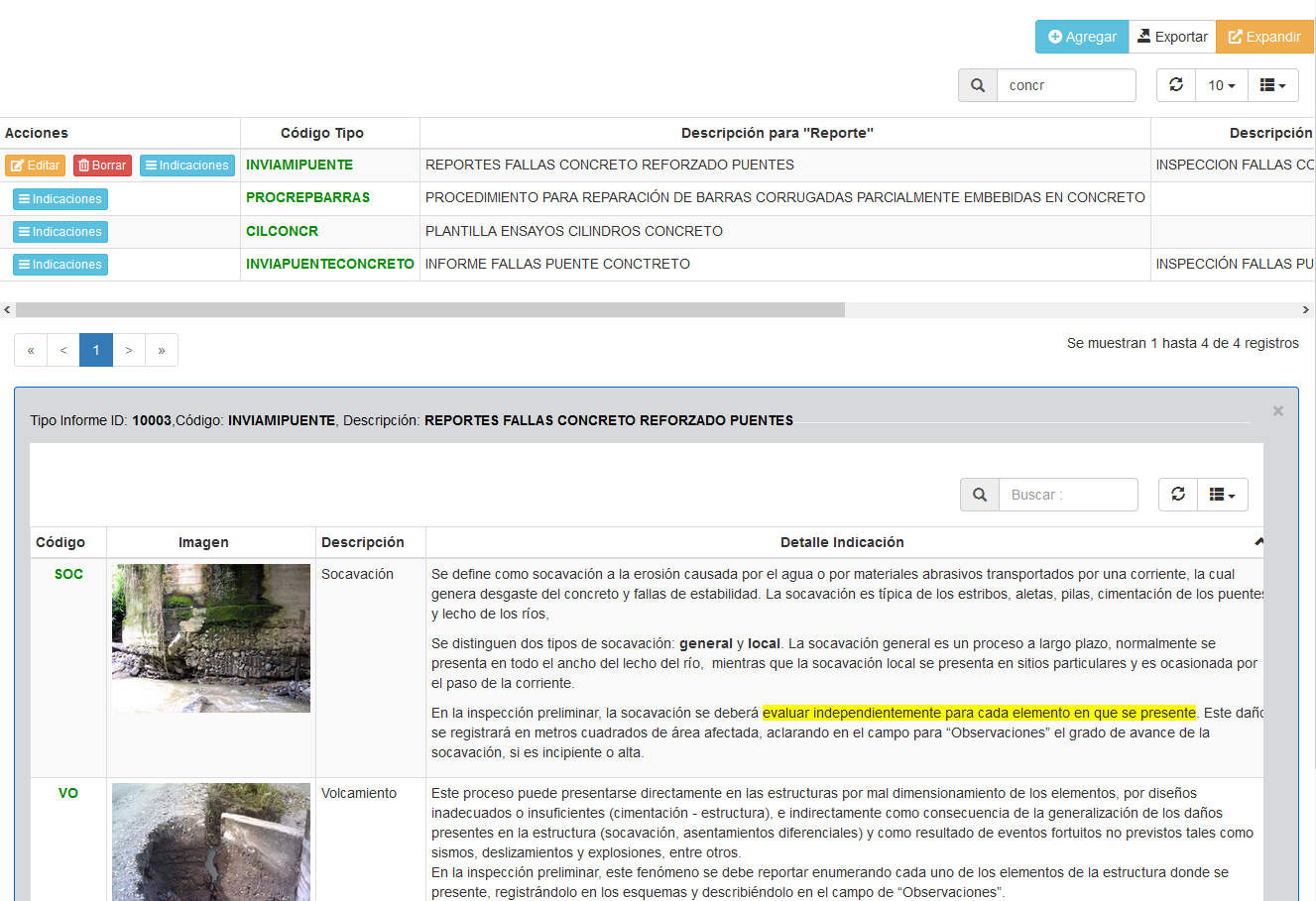 . - Una vez definidas las indicaciones se asocia al reporte en la pestaña "Tipos Infomes - Indicaciones" . Más detalles, ver Indicaciones