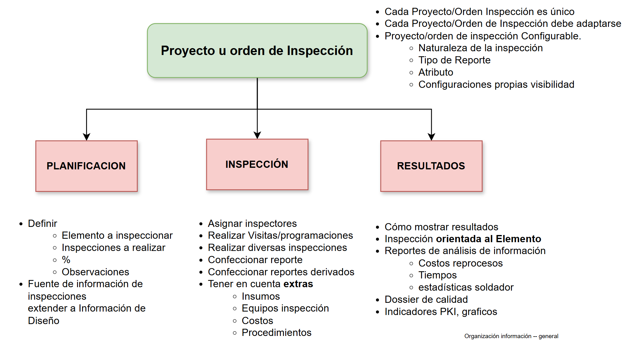 Si se analiza la información relacionada con una orden o proyecto de inspección, se puede apreciar que contiene varios aspectos a considerar, los cuales se simplifican con el siguiente diagrama.