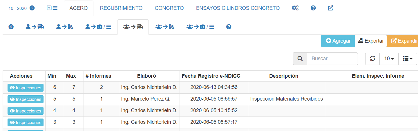 (Para visualizar visitas del inspector ver Visitas del inspector)