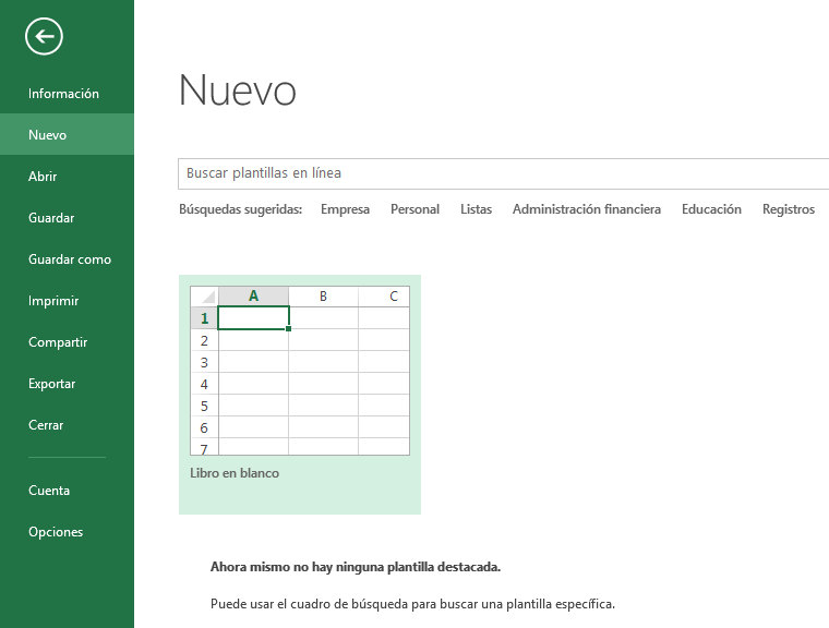 En el caso de emplear Office 2013, se debe seleccionar nuevo