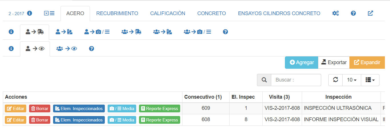 Los reportes Express creados por otros inspectores o aquellos que han sido creados desde plantilla de Office, solo tendrán permisos de lectura,
