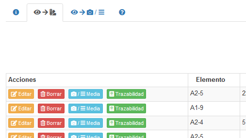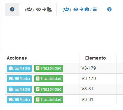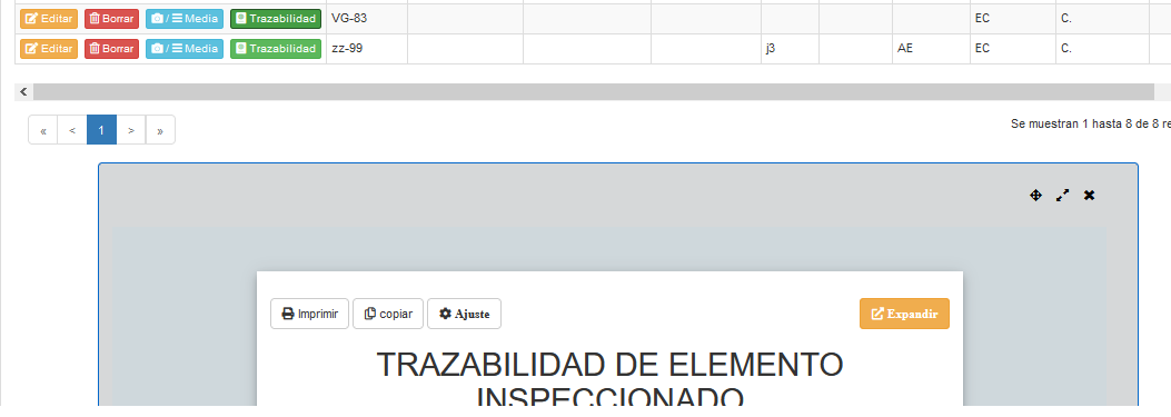 Al presionar el botón "Trazabilidad", se expande una zona al final del listado mostrando el reporte de trazabilidad generado para tal elemento, tal como se muestra a continuación