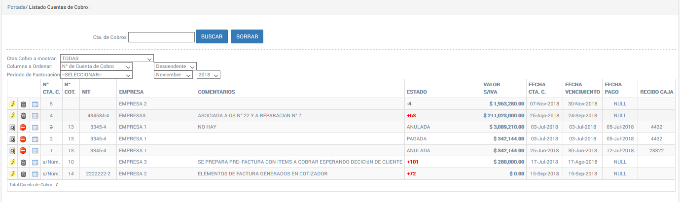 Listado de Cuentas de Cobro
