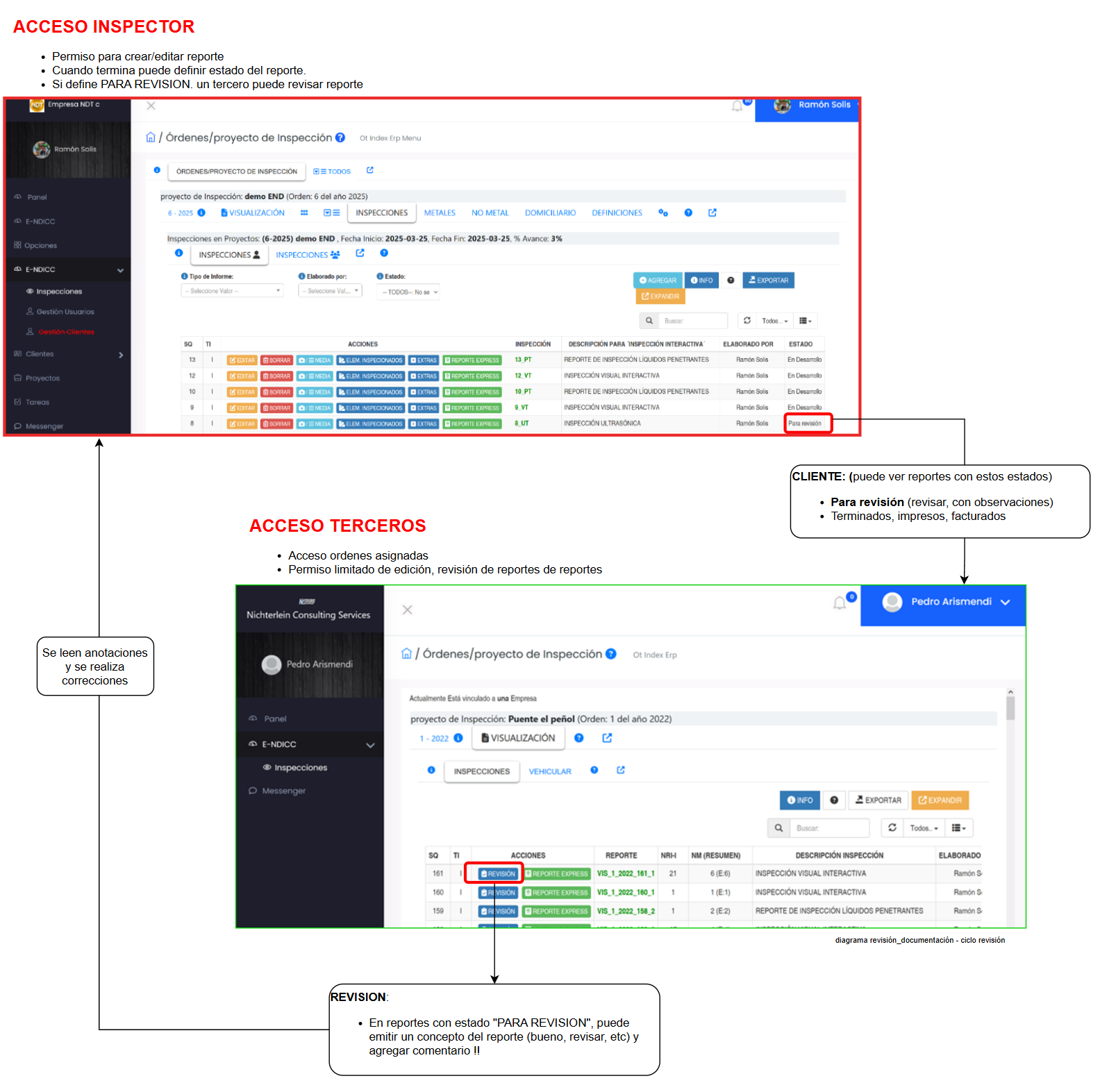 Con el fin de optimizar aún más el proceso de inspecciones, se ha desarrollado el módulo de revisión de Inspecciones en el sistema e-NDICC-ERP.