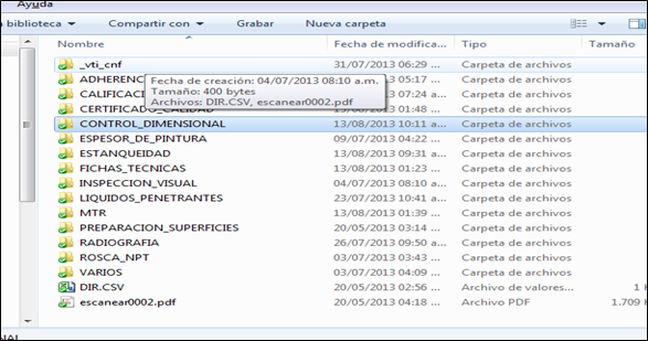 Fig 1047 Dossier de calidad en formato digital, se muestran archivos de inspecciones inspecciones [2].