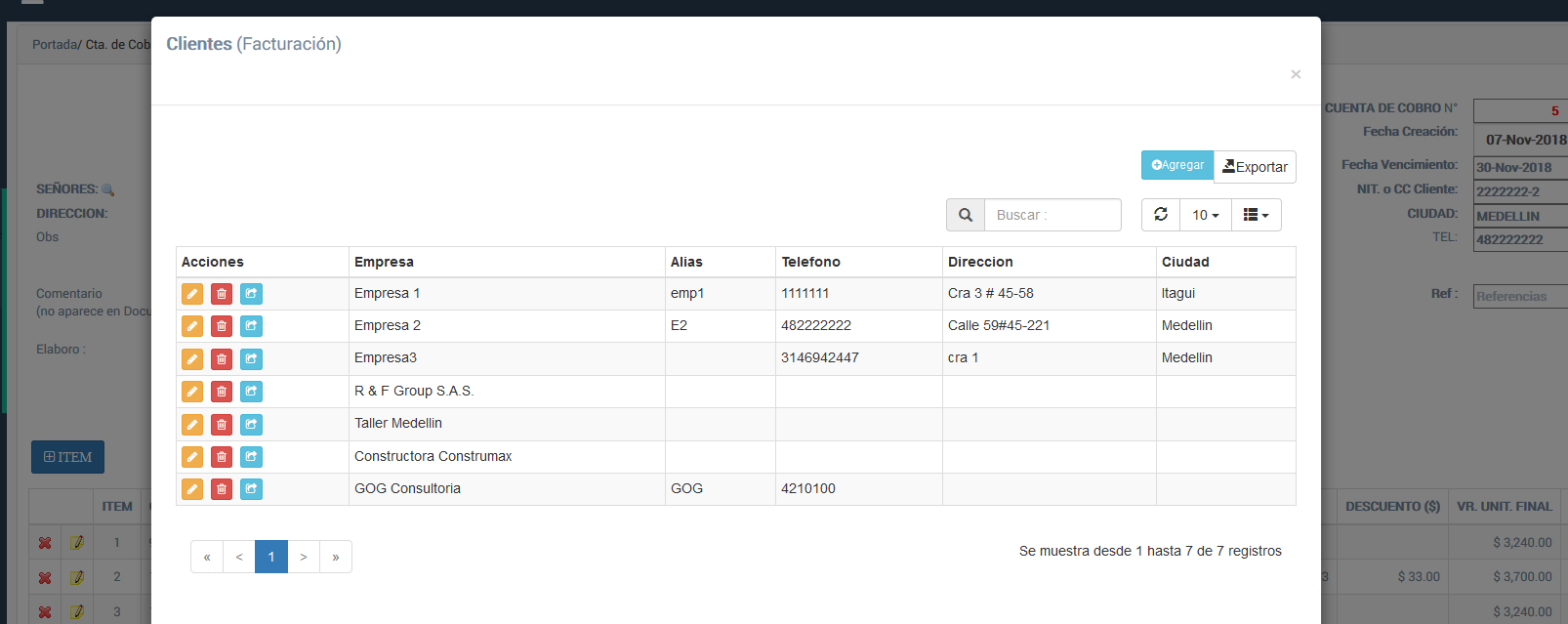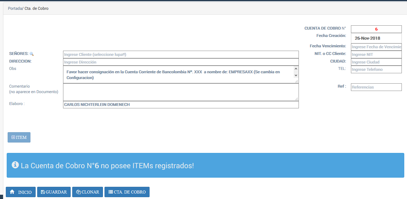- CUENTAS DE COBRO Presionar para ver listado CUENTAS DE COBRO Existentes.