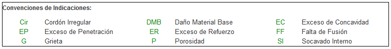 Al activar opción Indicaciones, se activará un recuadro que permite visualizar el detalle de las convenciones de las Indicaciones encontradas en este reporte, tal como se aprecia en la imagen a continuación.