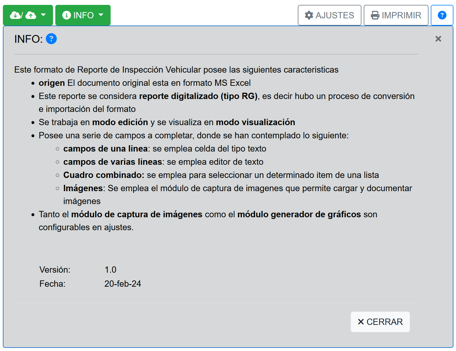 Fig 341 Extracto de pantalla ACERCA con detalle de Información del formulario.