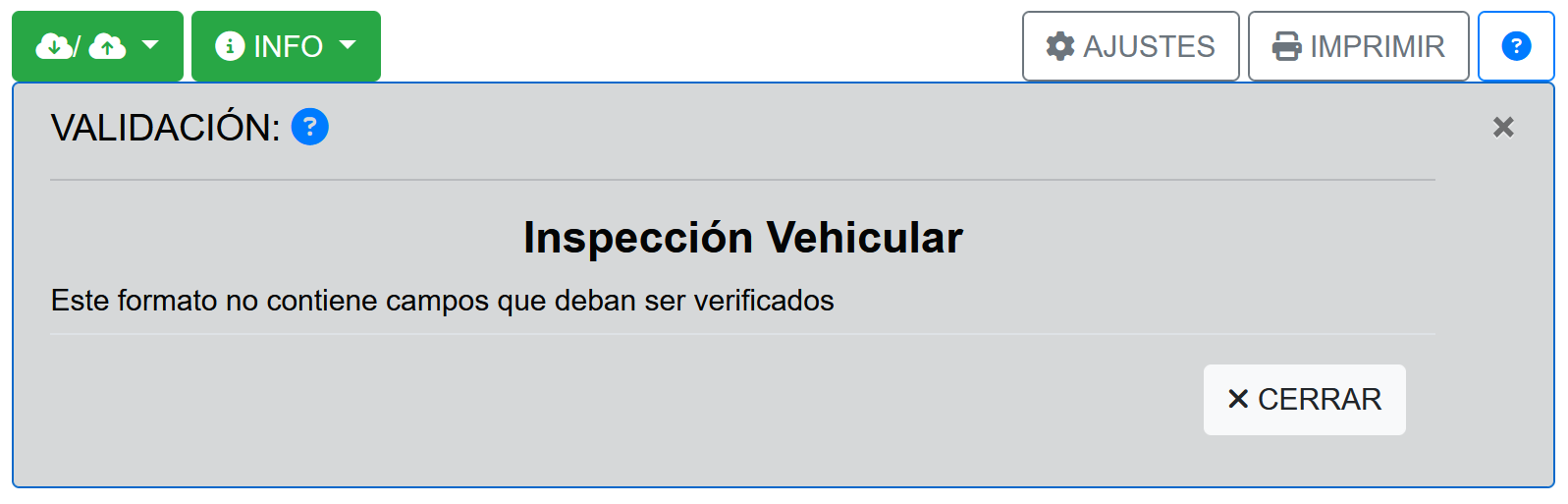 Fig 340 Extracto de pantalla VALIDACION con detalle de Información del formulario. Este formulario no contiene validación.