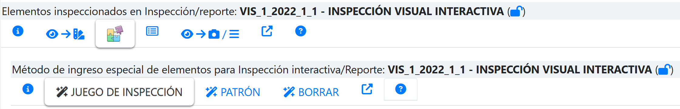 Emplea un asistente que permite agregar ítems de inspecciones de acuerdo a un patrón y la cantidad de veces que se repite, identificando cada uno de ellos. Mayor información, ver detalle de como ingresar elementos usando asistente para Ingreso con patrón |