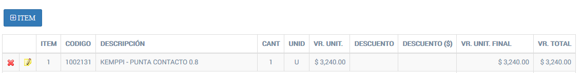 El proceso de agregar/modificar/borrar un Producto/Servicio definido es exatamente igual al proceso descrito en Detalle de una Cotización convencional.