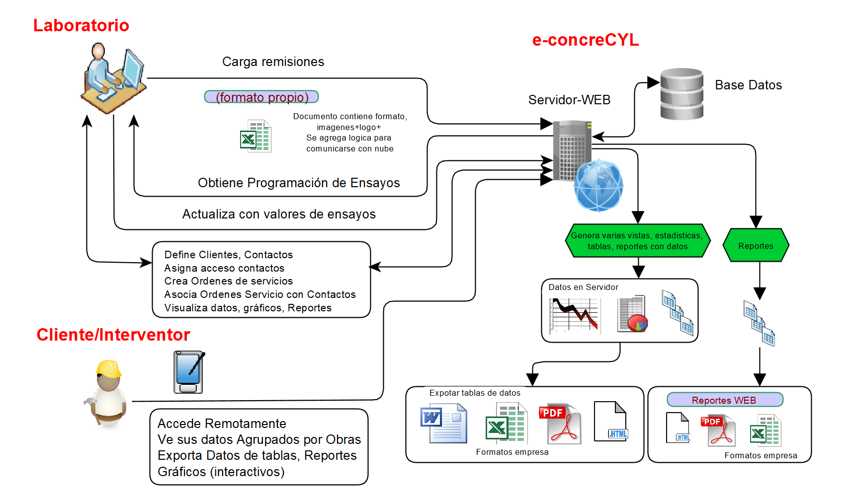 Los flujos de información de e-ConcreCYL se pueden visualizar en el siguiente Diagrama: