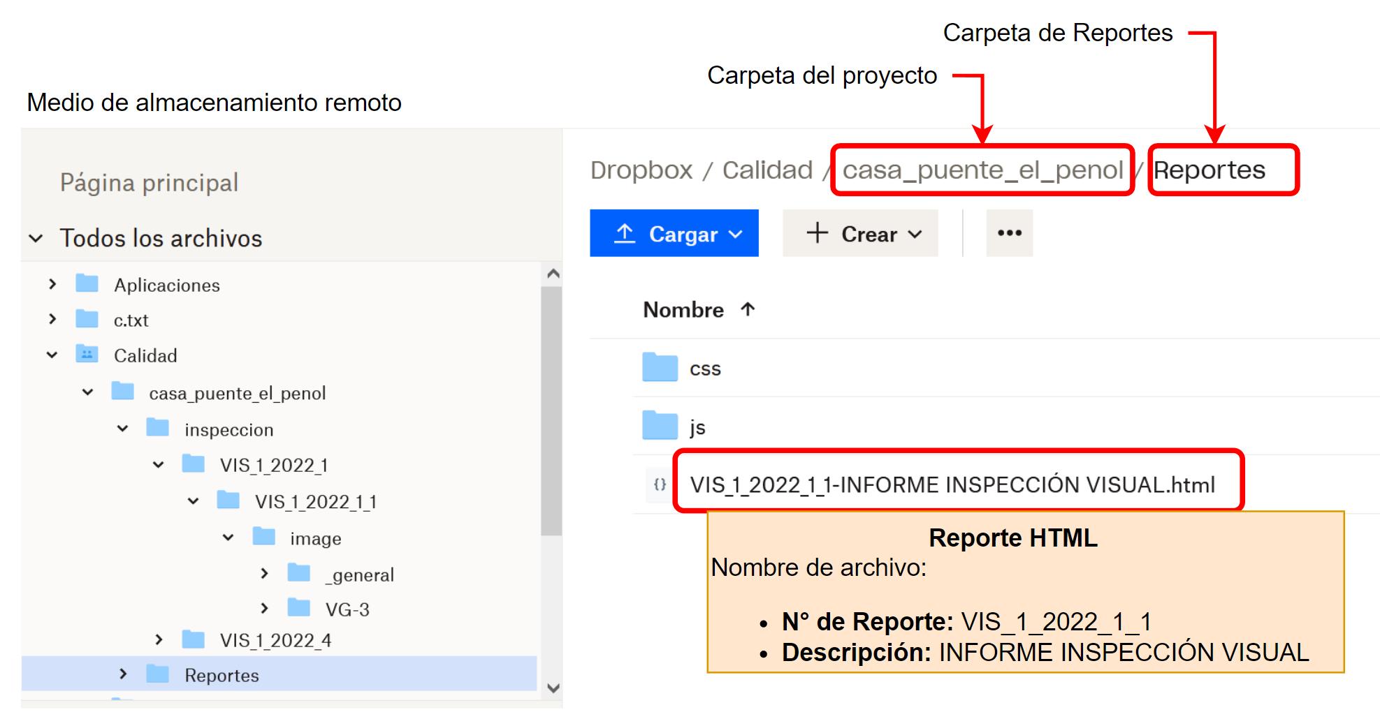 Fig 836 Captura de imagen que muestra medio de almacenamiento remoto y ubicación de archivo generado HTML