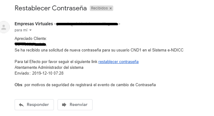 Luego de recibir el correo, el siguiente paso será seleccionar el vínculo para restablecer contraseña.Más detalles restablecer Contraseña Clientes
