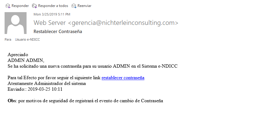 Luego de recibir el correo, el siguiente paso será seleccionar el vínculo para restablecer contraseña.Más detalles Restablecer Contraseña Usuario