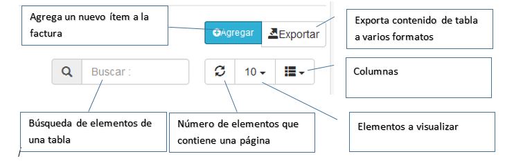 Elementos: Determina el número de elementos (filas) que se desplegaran en una página, útil si hay muchos registros, por rapidez 10 es adecuado, otros valores 25, 50 o todos,
