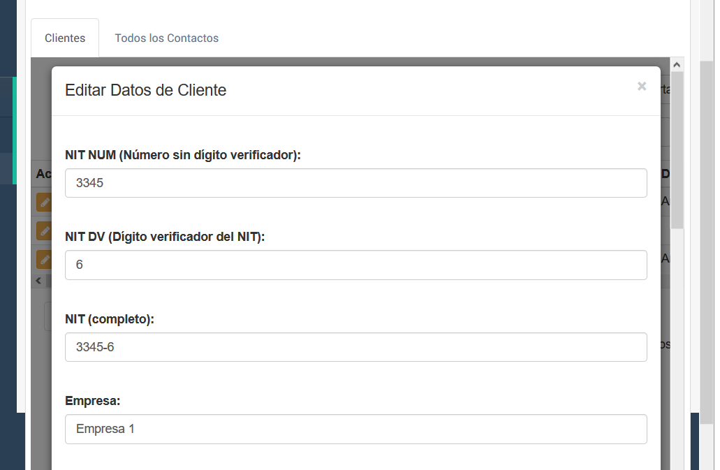 Al seleccionar el botón "Editar" y/o "Agregar", aparecerá una ventana emergente con todos los campos que sea necesario modificar. Dependiendo del tipo de campos puede usarse elementos para visualizar como calendario, listas etc...