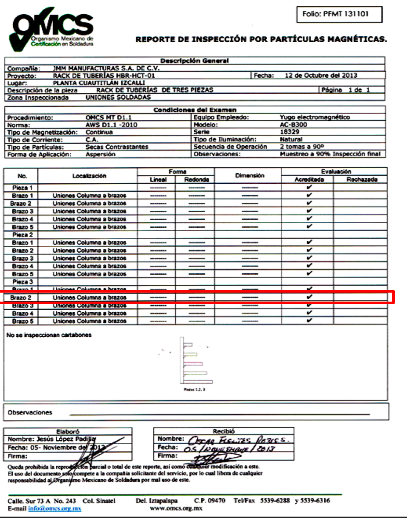Este tipo de reporte esta generalizado en la inspección de calidad de estructuras y componentes.