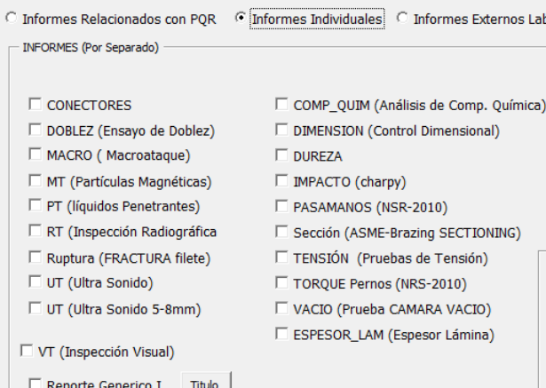 Fig 809 Listado de "algunos" tipos de reporte asociados a familia de Inspección Acero