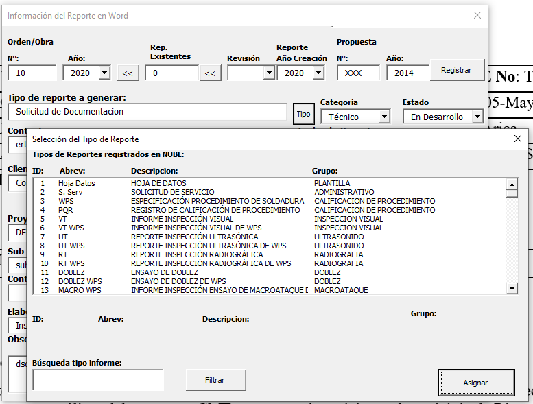 Word es distinto a Excel ya no se puede emplear un documento para muchos tipos de reportes, sin embargo en Word se permite seleccionar el tipo de reporte que se empleará. esta selección se hace al listado de definiciones existente en la nube.