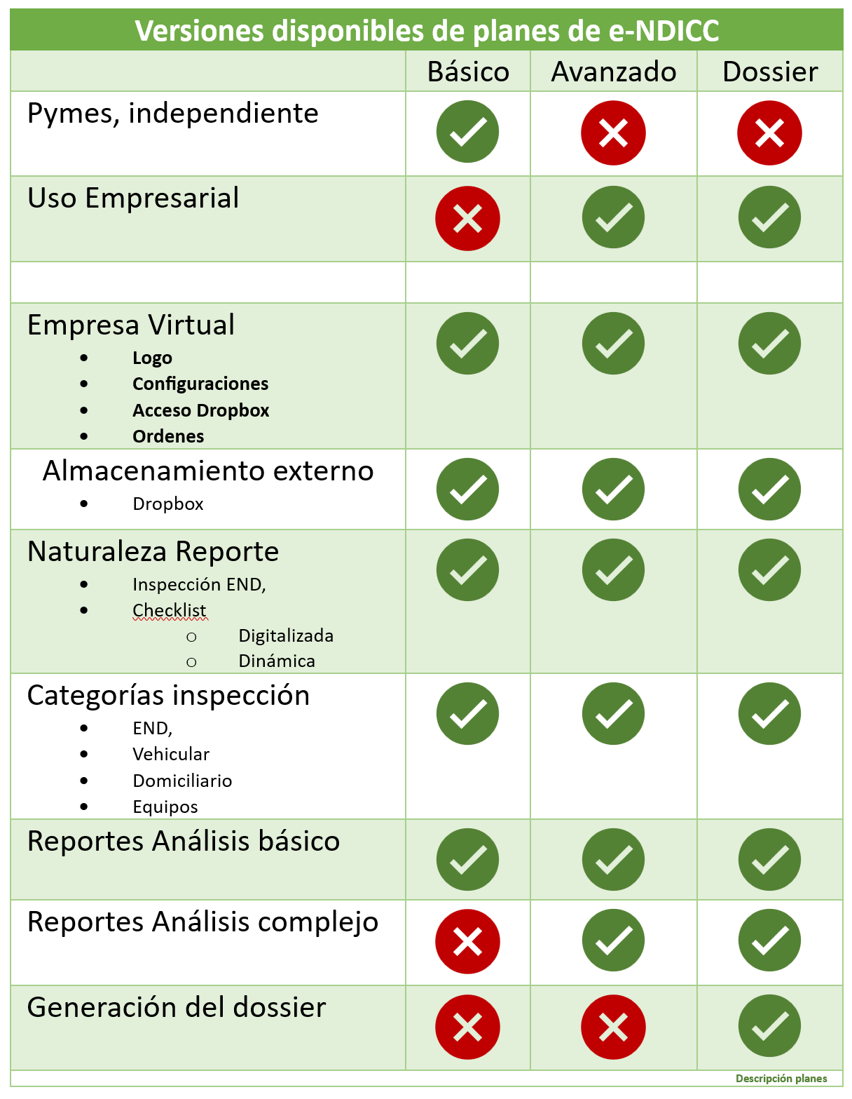 Esta variante permite que inspector independiente o PYMES pueda realizar su inspección y generar su reporte, con una funcionalidad de análisis básica. - Plan e-NDICC-Avanzado