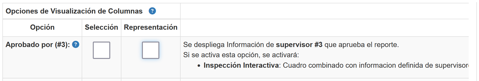 El atributo aprobado por (#3) se puede presentar en cada Inspección Interactiva o reporte. No es una información de carácter obligatorio por lo que por defecto su visualización está desactivada (en cada orden se puede activar o no) si se requiere.