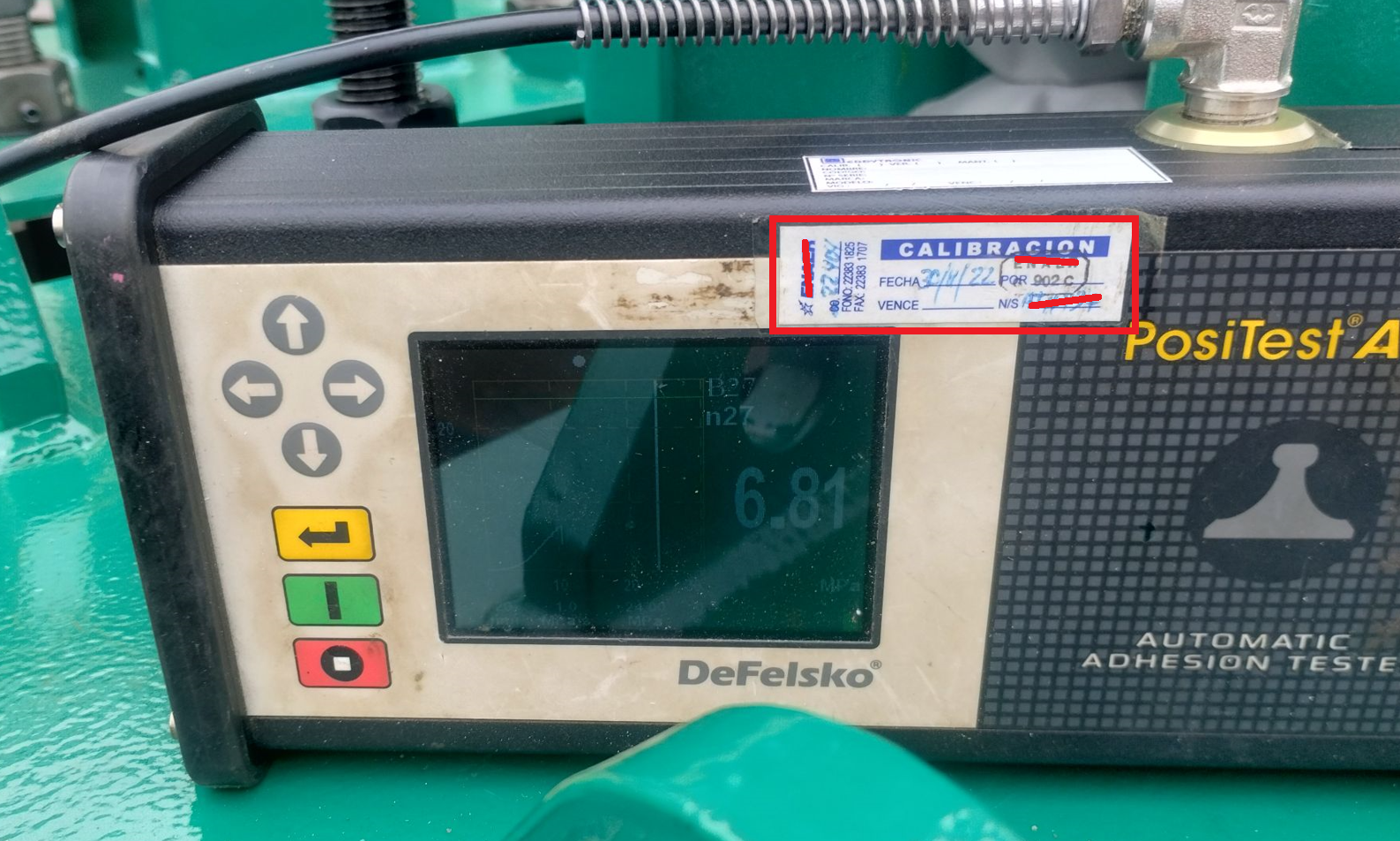 Fig 601 imagen de equipo mostrando su respectiva Etiqueta de calibración. (imagen con fines descriptivos)