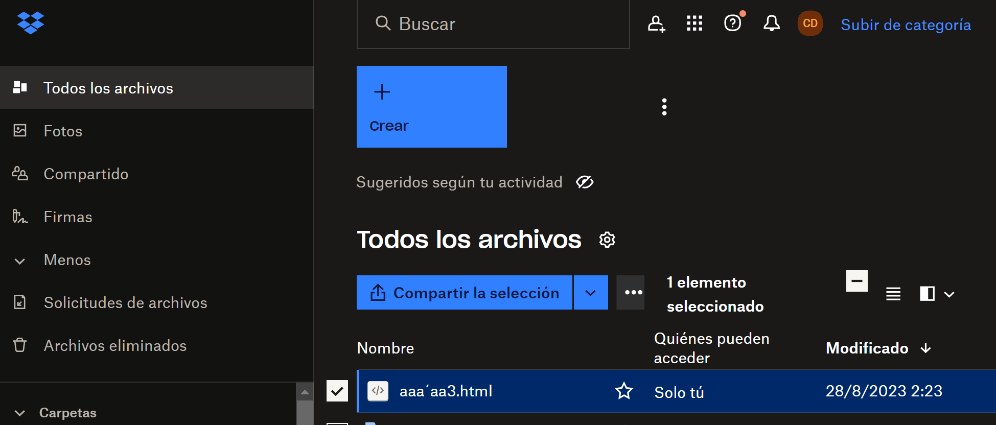 Fig 1433 Extracto de pantalla muestra archivo con nombre con "´" (acento) sin problemas sistema dropbox.