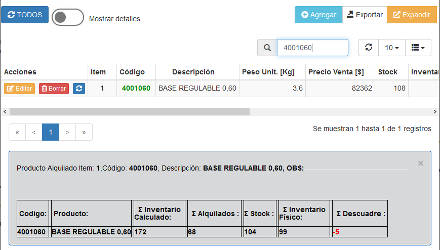 ) desde el listado de productos en Alquiler, se desplegará una ventana que muestre el detalle de tal cálculo, tal como se muestra en la imagen a continuación.