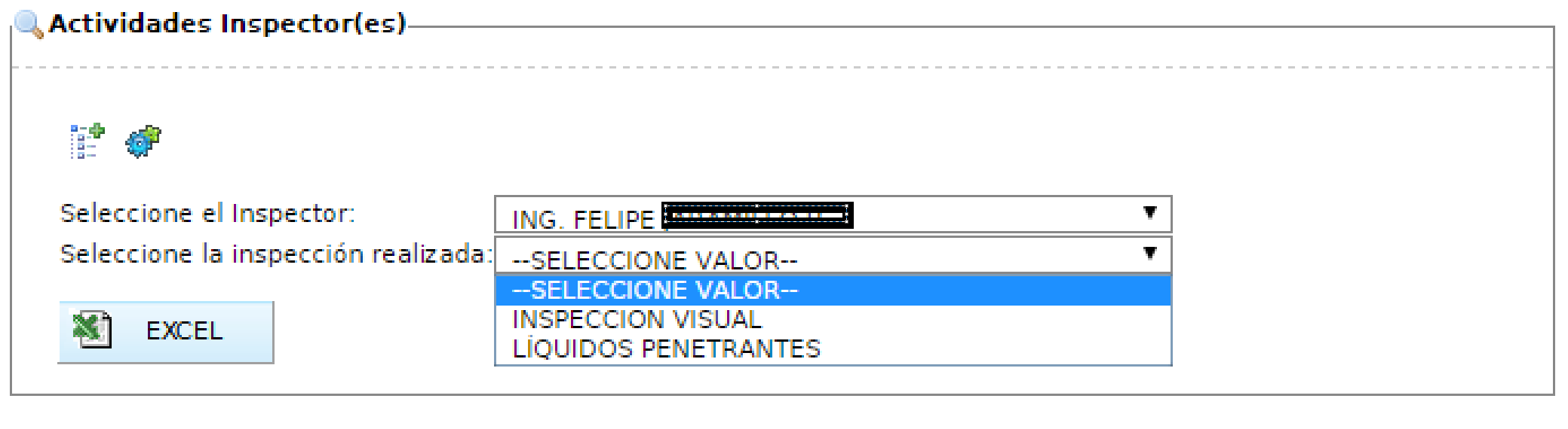 En Bitácora inspector se presentan los siguientes campos